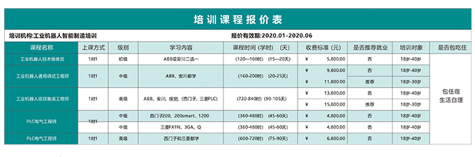 培訓(xùn)課程價格表